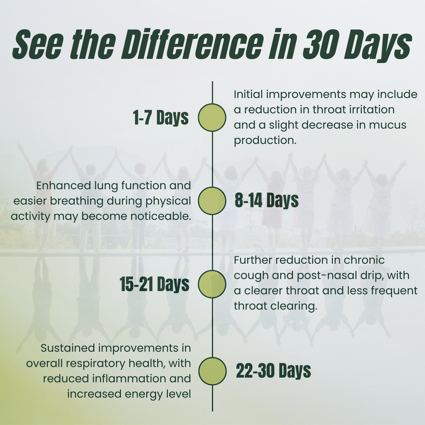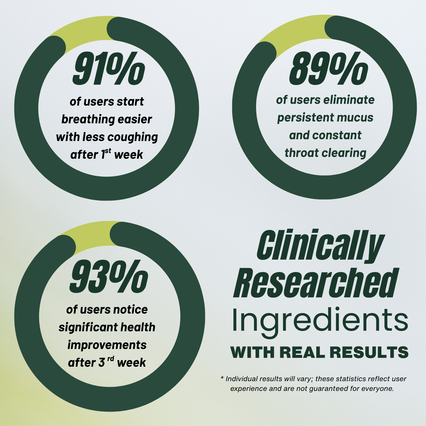 We're so confident you'll get relief that we offer a 30-day money-back guarantee. If you don't experience clearer breathing, reduced throat irritation, and easier mucus clearance, simply return the bottle for a full refund - no questions asked. We've helped 50,000+ people already, and we're confident you'll be next.