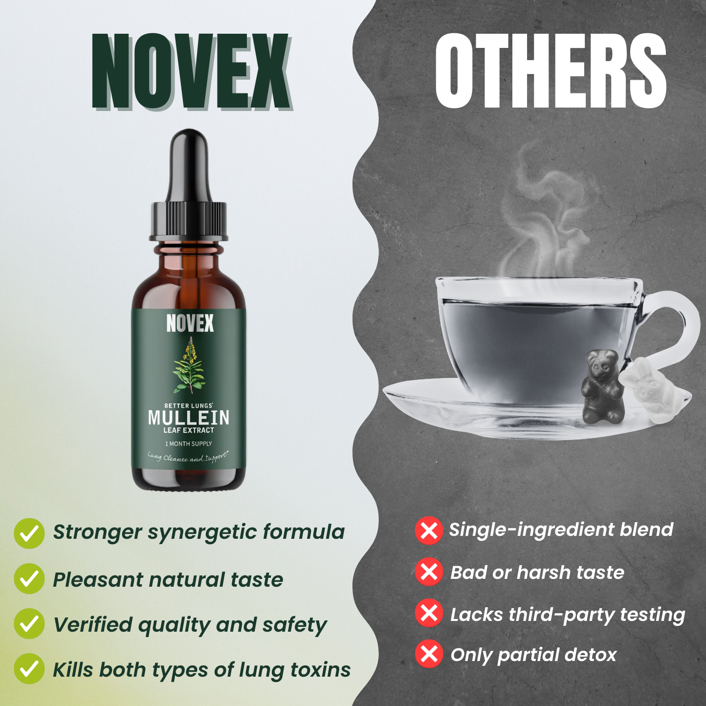 Cheap mullein extracts are weak, filled with useless ingredients, and often don't work. Our premium organic mullein is concentrated for maximum potency, third- party tested for purity, and made in an FDA facility. You get what you pay for - and with our guarantee, there's zero risk to try the real thing.